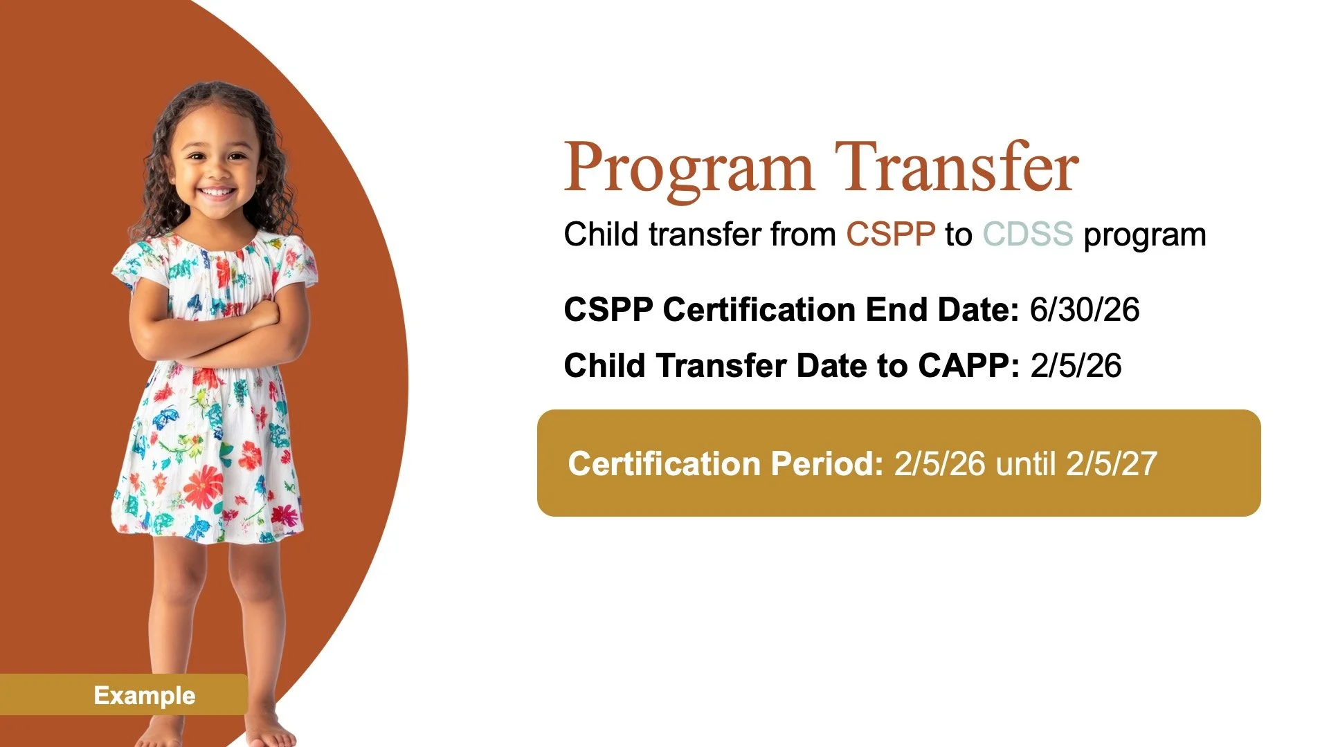 A family may request to transfer their child from a CSPP program, into your APP program. Typically, this would be due to a child aging-out, or simply wanting to transfer into your APP program classroom. For continuity of services, if eligible, the family may transfer during their certification period into your APP program.