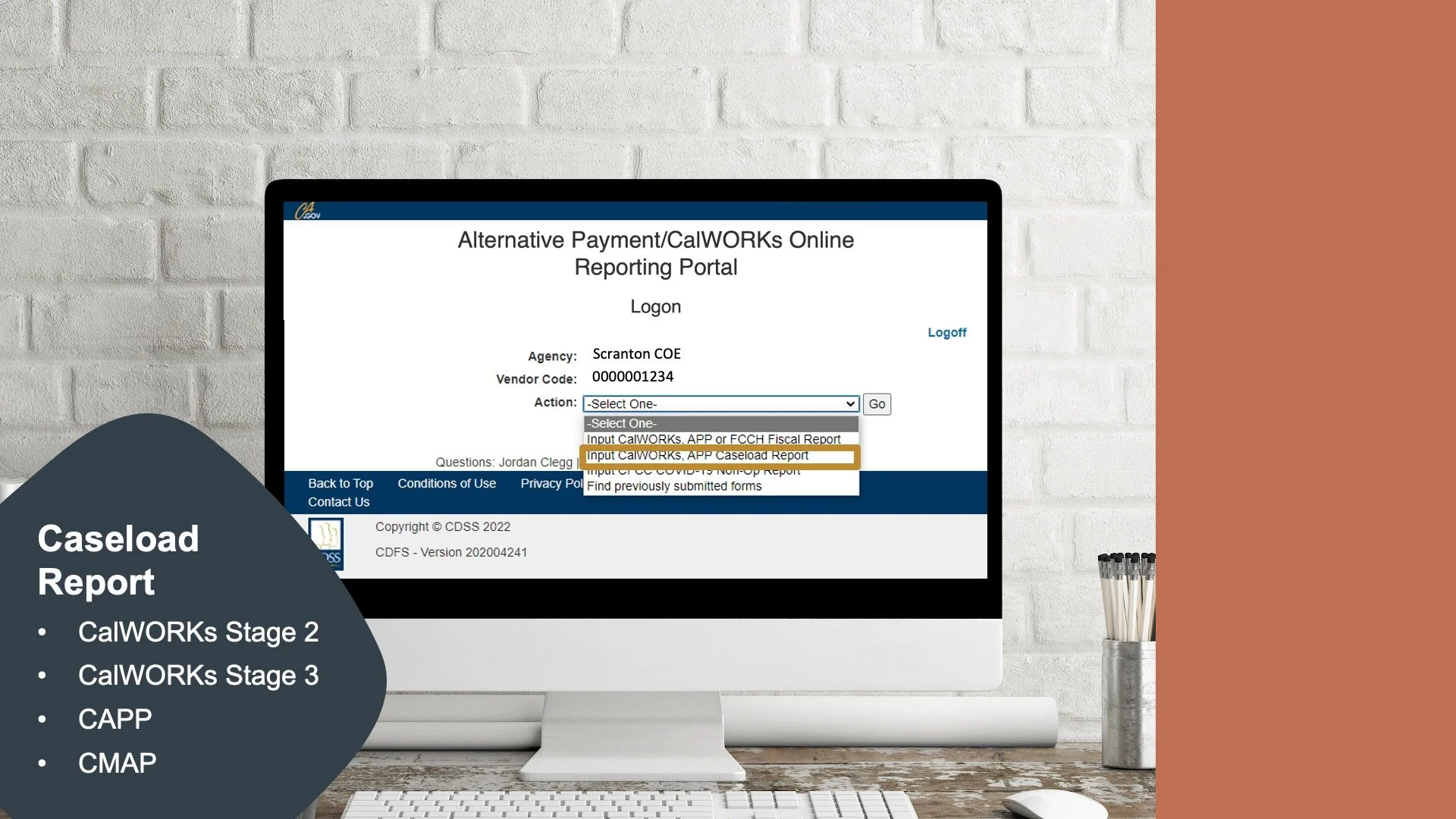 Contractors select the Input CalWorks, APP Caseload Report, & complete for the appropriate reporting period.