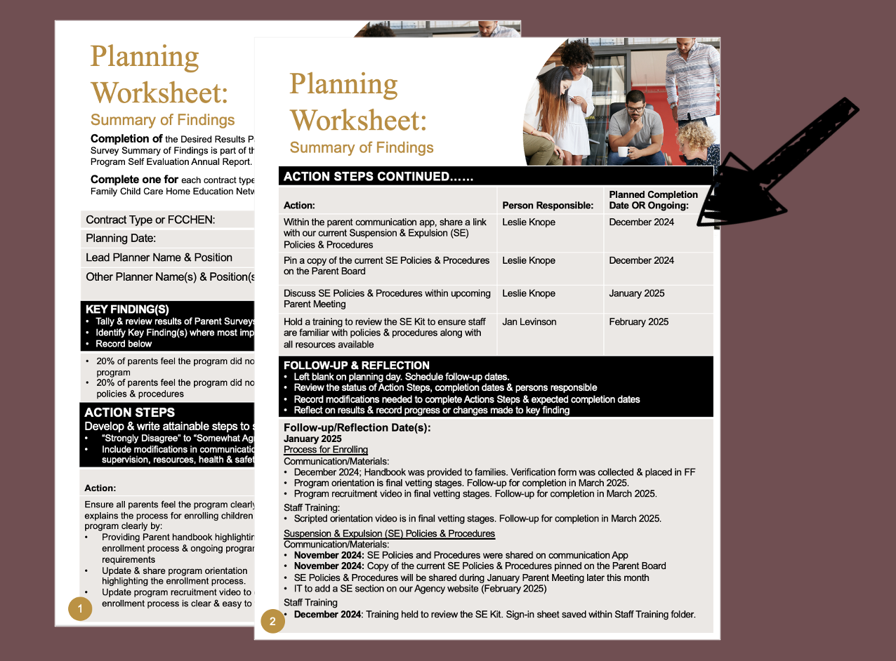 In the end, don’t forget to document any follow-up and reflections on the Parent Survey Summary of Findings form.