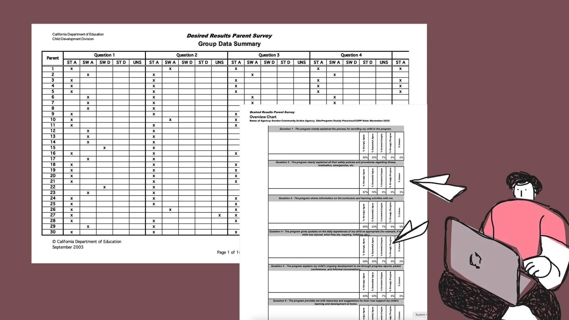 A Parent Survey Summary of Findings is located within the department's survey instructions, or you can make your own as long as it contains the minimum data elements.