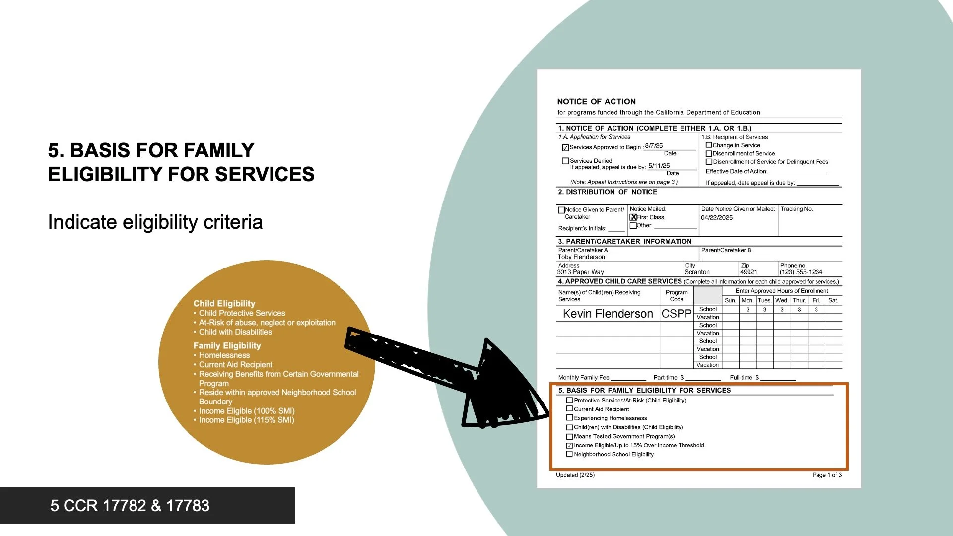 Section 5. Basis for Family Eligibility for Services
