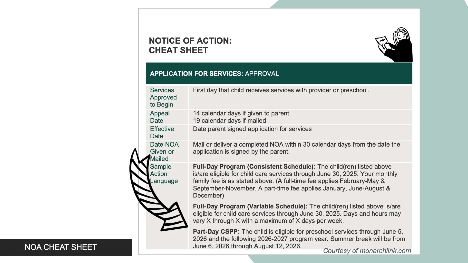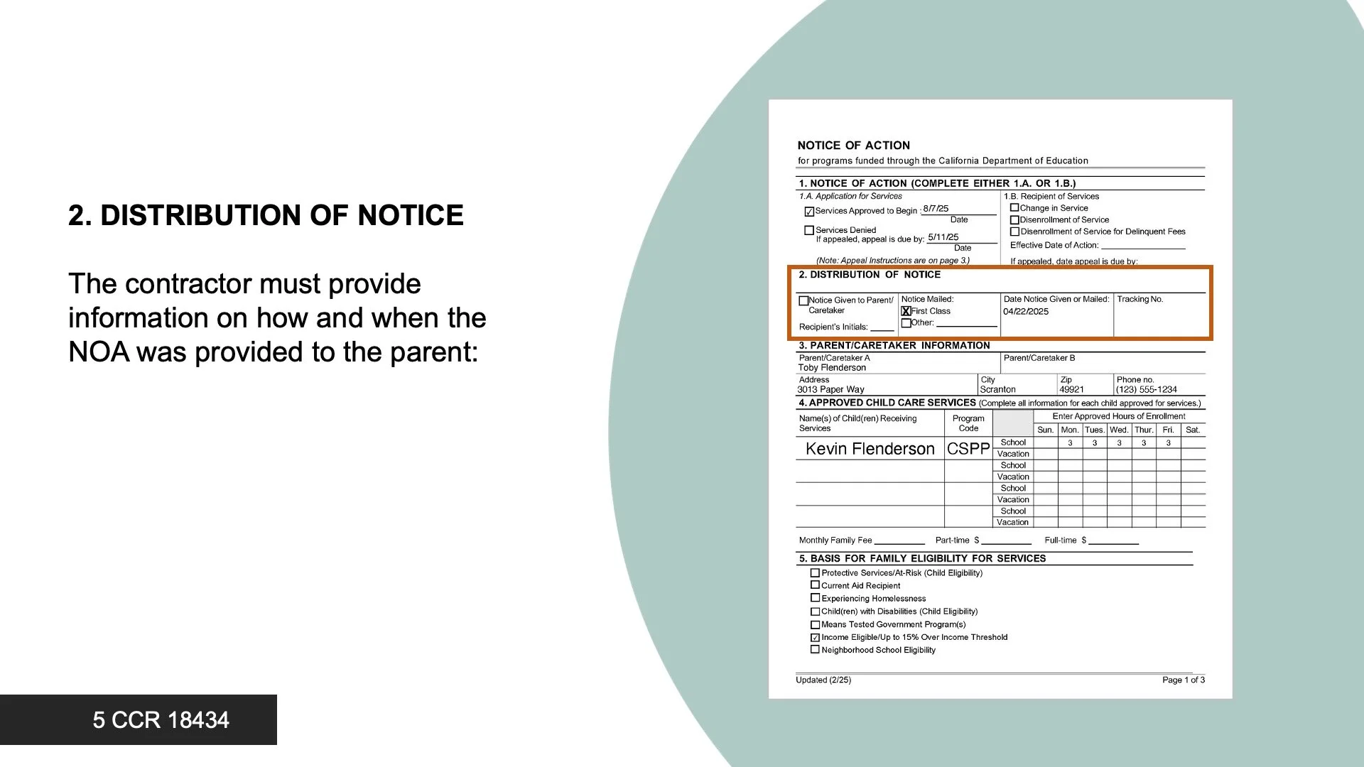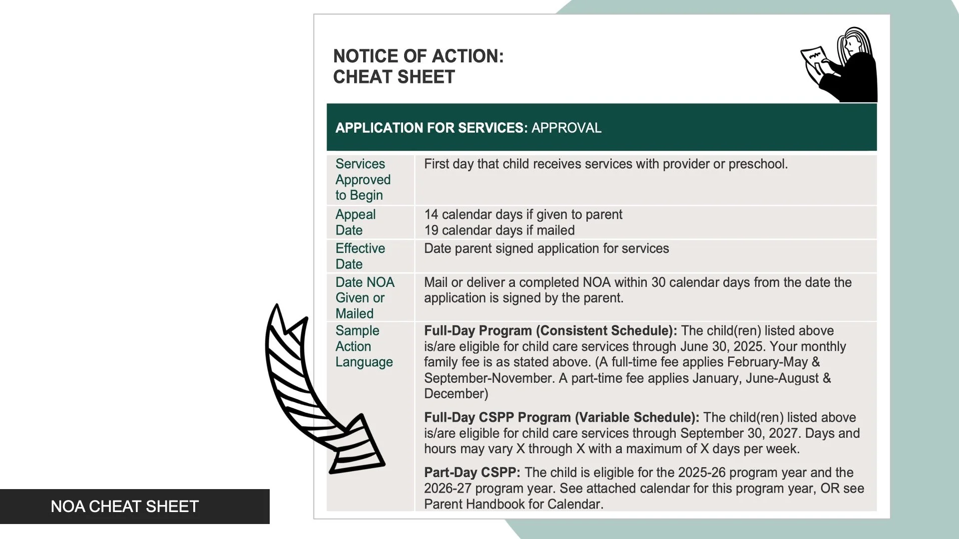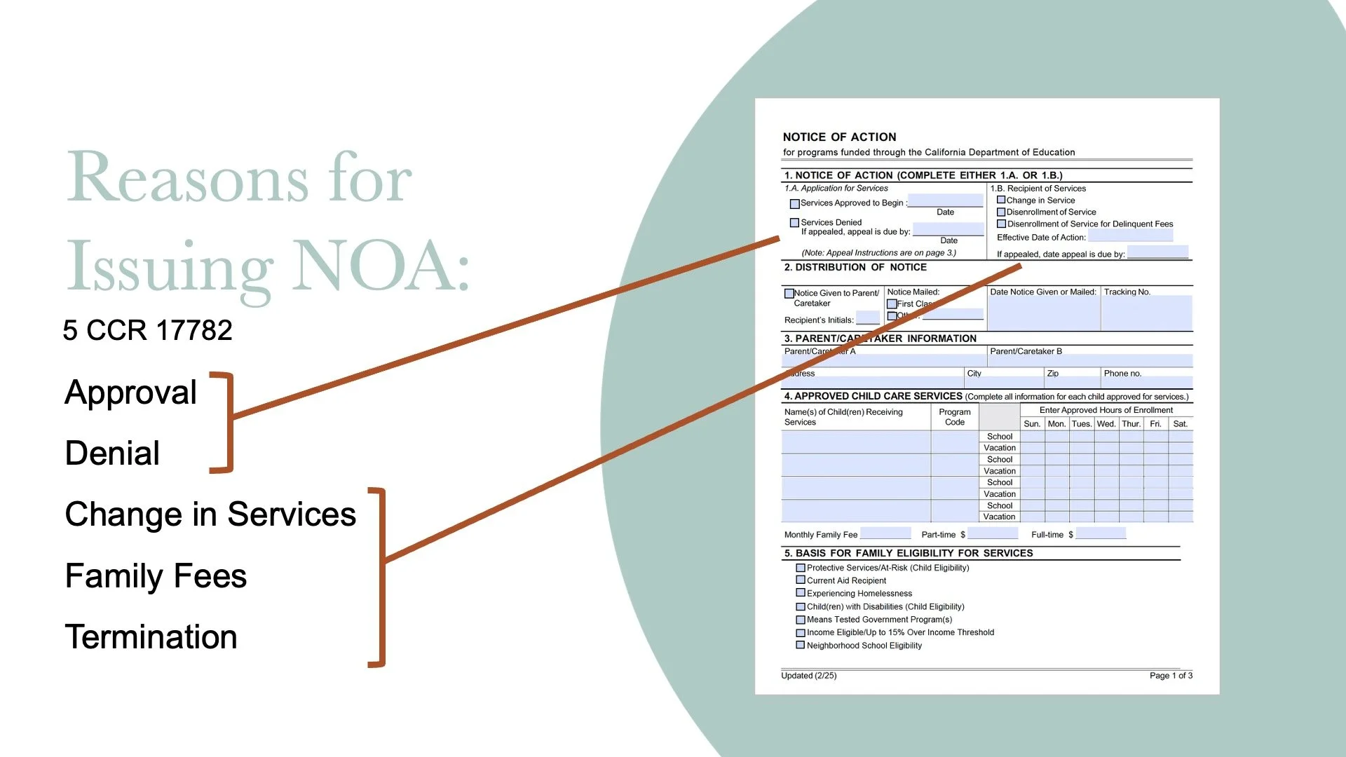 Parents are issued a NOA that includes both the front & back of the Notice of Action.