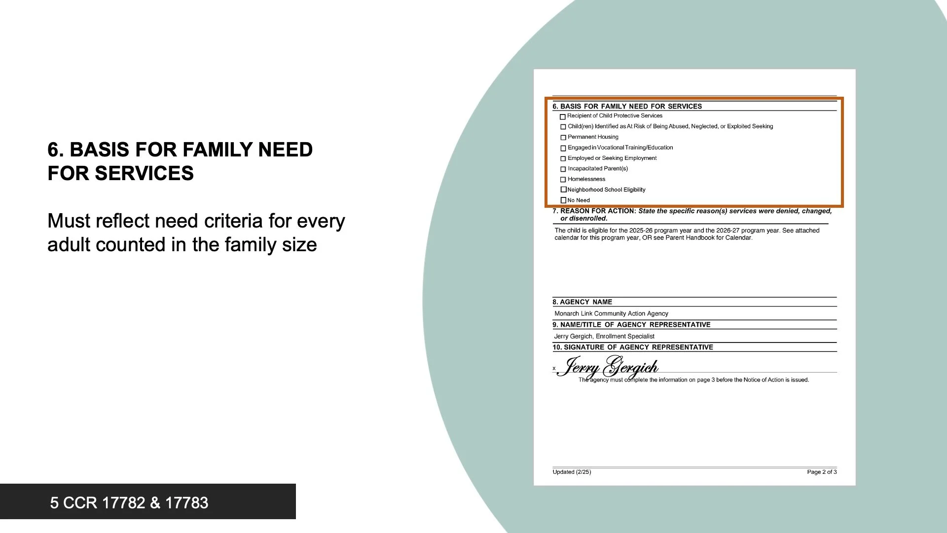 Before sending an NOA to a family for failing to provide eligibility information, the contractor must be able to demonstrate that a written request for the information preceded the NOA. Basically remember a few things: